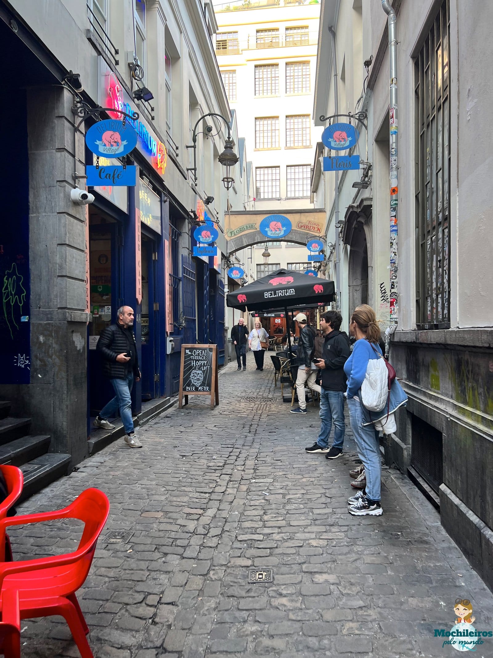 O Delirium café, é um dos bares mais famosos da Bélgica, e em Bruxelas está localizado numa rua bem pequenina, um beco, chamado Impasse de la Fidélité/Getrouwheidsgang, próximo da Grand Place, a praça central de Bruxelas.