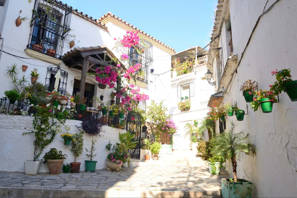Depois de visitar a igreja, nos perderemos nas ruas brancas e floridas do centro histórico de Estepona, declarado Bem de Interesse Cultural. Este labirinto de é um convite para explorar e se maravilhar com a beleza simples e encantadora da arquitetura tradicional andaluza. As fachadas brancas, adornadas com flores vibrantes, criam um cenário perfeito para fotos memoráveis.